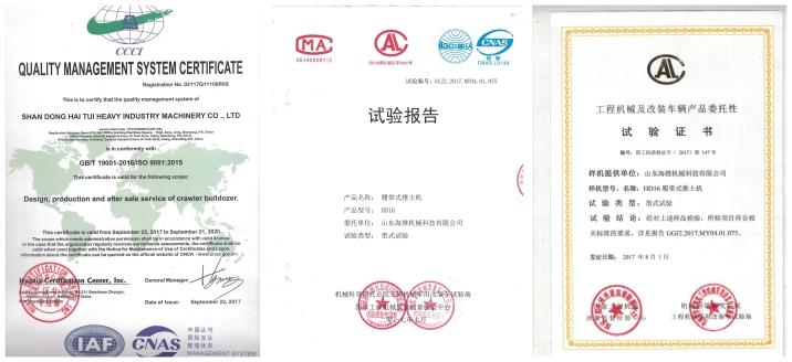 Haitui Marke Bulldozer hat ISO-Zertifikat und der Radlader und Bagger sind CE-Zertifikat genehmigt.